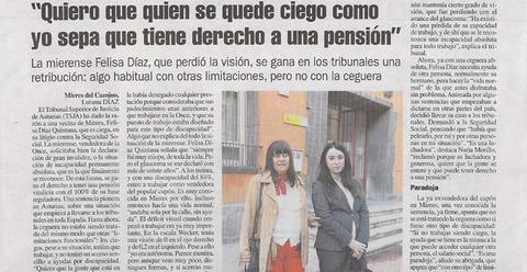 La mierense Felisa DÃaz, que perdió la visión, se gana en los tribunales una retribución: algo habitual con otras limitaciones, pero no con la ceguera