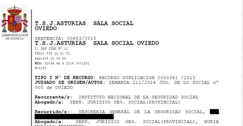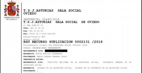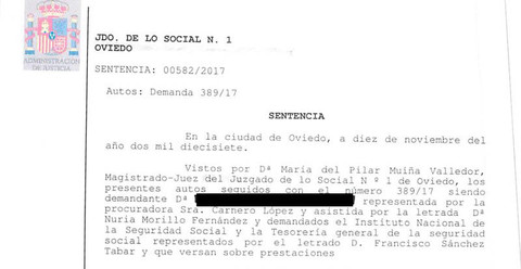[Leer Más]Dicha sentencia ha sido confirmada por el Tribunal Superior de Justicia de Asturias desestimando el recurso interpuesto por el Instituto Nacional de la Seguridad Social.