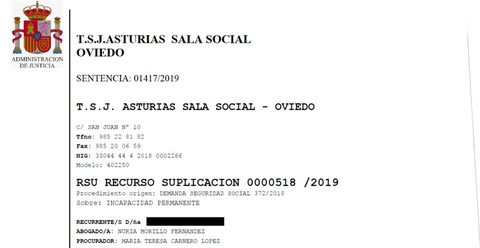 El Tribunal Superior de Justicia de Asturias dictó sentencia contra el Instituto Nacional de la Seguridad Social, en relación a las prestaciones de Seguridad Social que había denegado a nuestra cliente al considerar que no existía invalidez permanente tras revisar nuevamente su situación.